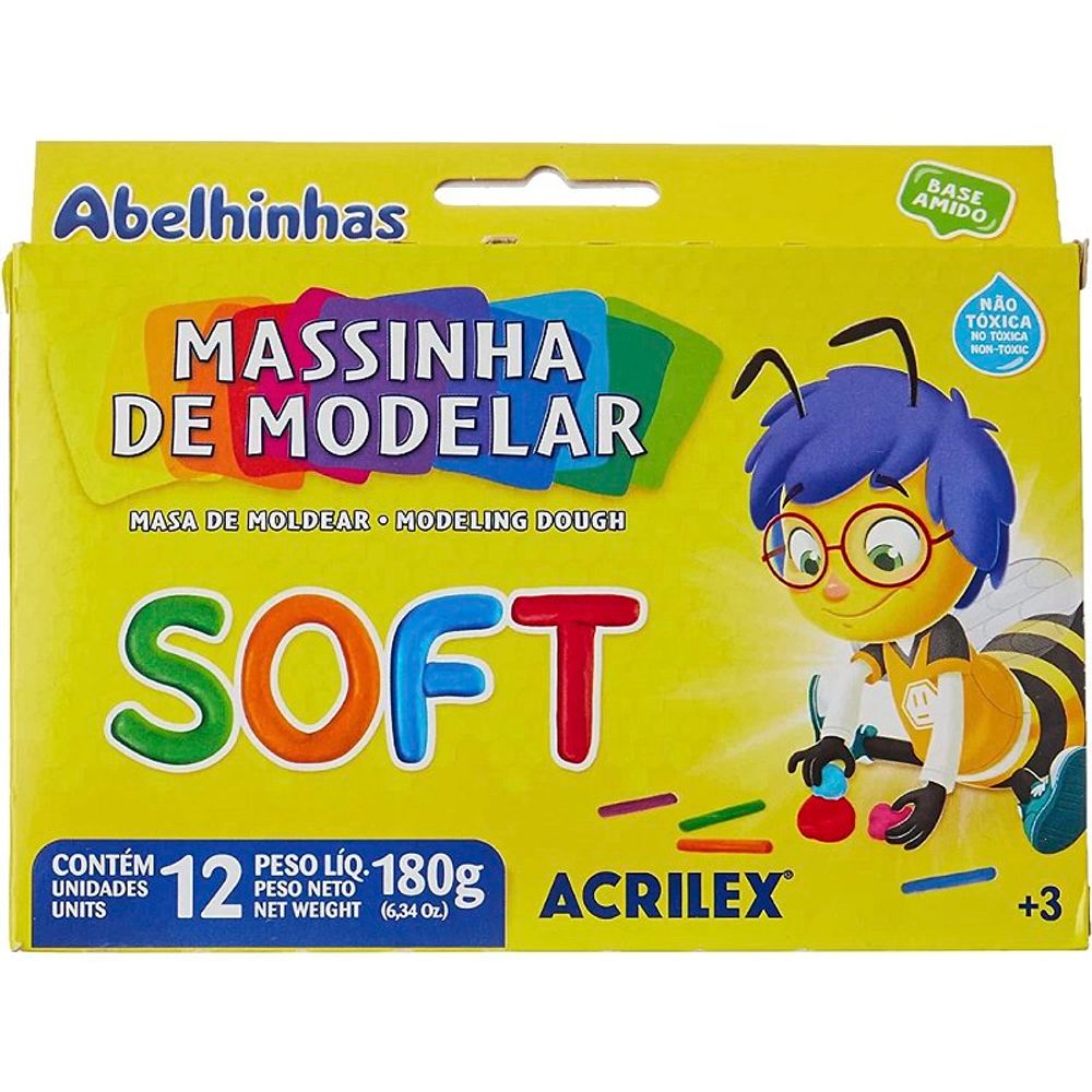 A Massinha de Modelar Soft com 12 Cores da Acrilex é um produto certificado com padrões de qualidade brasileiros, oferecendo uma experiência segura e divertida para os pequenos. Com uma composição à base de amido, essa massinha é super macia e fácil de modelar, proporcionando momentos de diversão e aprendizado.